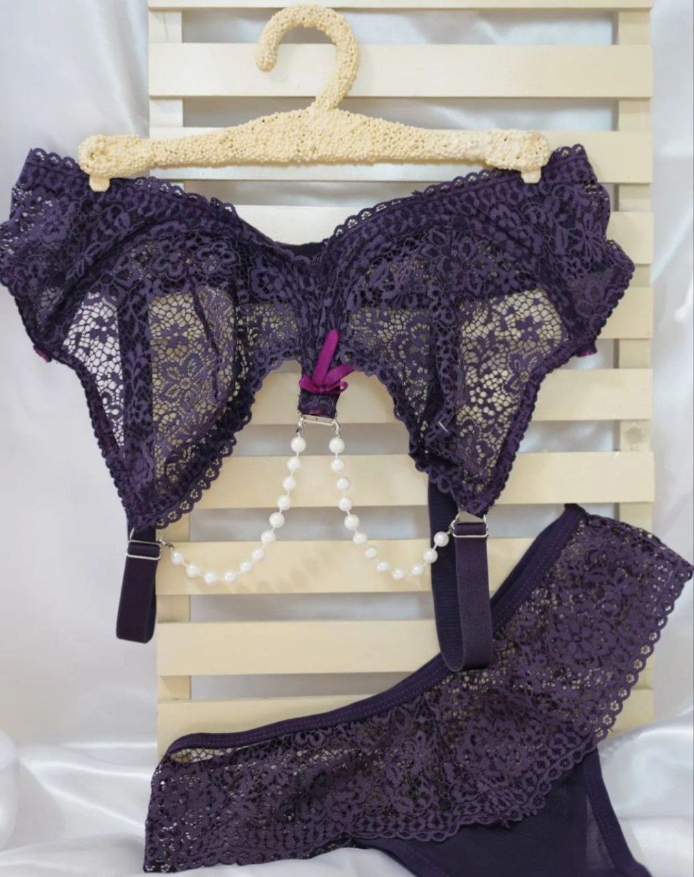 ست لباس زیر زنانه فانتزی TRT مدل Livia | دانتل نیمهشفاف + شورت لامبادا